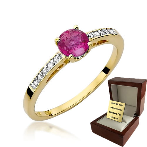 ZŁOTY PIERŚCIONEK ZARĘCZYNOWY Z RUBINEM I BRYLATAMI