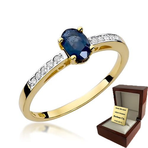 ZŁOTY PIERŚCIONEK ZARĘCZYNOWY Z SZAFIREM I BRYLANTAMI
