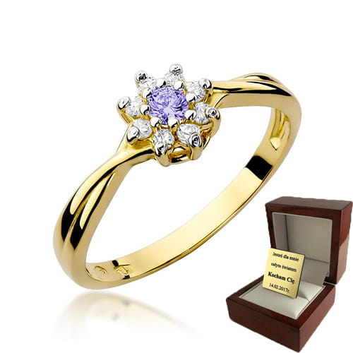 ZŁOTY PIERŚCIONEK ZARĘCZYNOWY Z TANZANITEM I BRYLANTAMI
