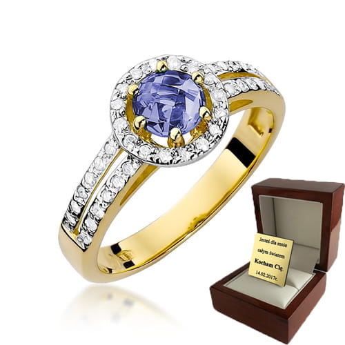 ZŁOTY PIERŚCIONEK ZARĘCZYNOWY Z TANZANITEM I BRYLANTAMI
