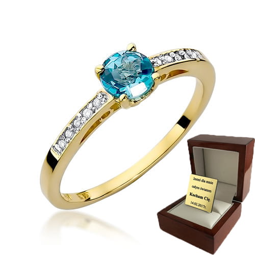 ZŁOTY PIERŚCIONEK ZARĘCZYNOWY Z TOPAZEM I BRYLANTAMI