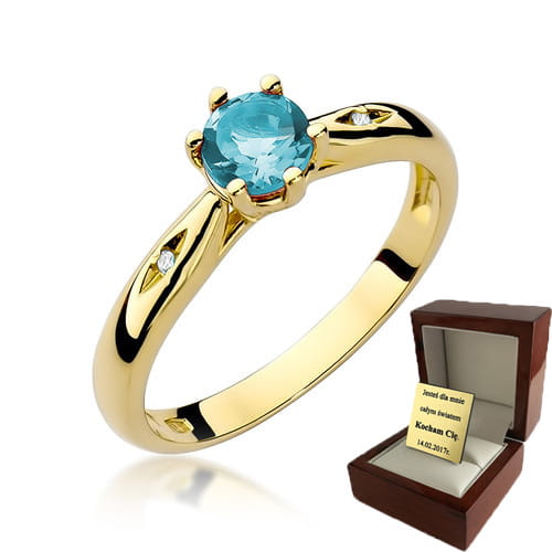 ZŁOTY PIERŚCIONEK ZARĘCZYNOWY Z TOPAZEM I BRYLANTAMI