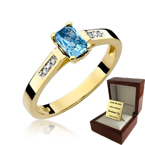ZŁOTY PIERŚCIONEK ZARĘCZYNOWY Z TOPAZEM I BRYLANTAMI