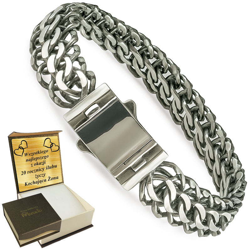 Gruba Unikatowa Bransoleta Srebrna Męska 14mm OKSYDOWANA Grawer GRATISNA Grawer GRATIS