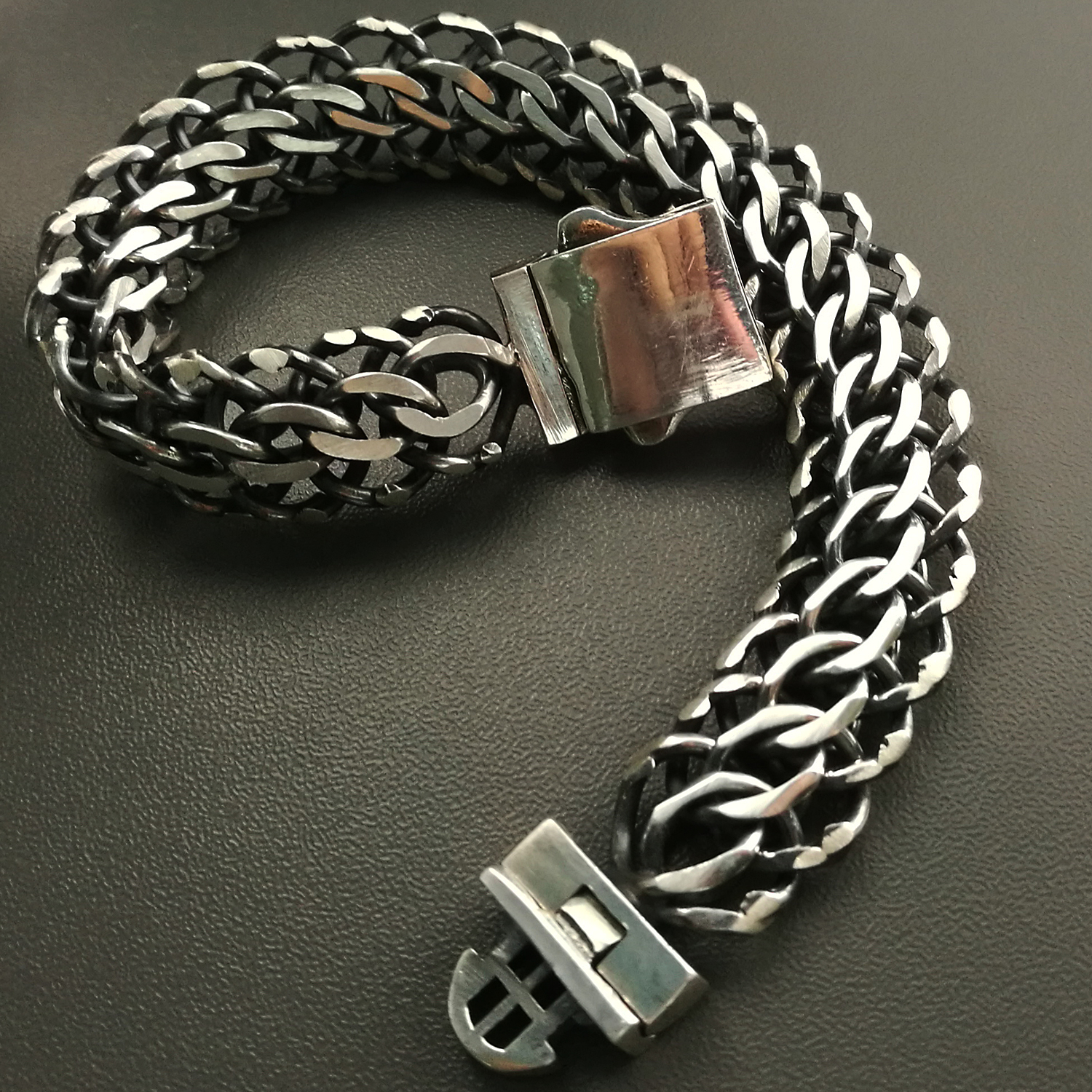 Gruba Unikatowa Bransoleta Srebrna Męska 14mm OKSYDOWANA Grawer GRATIS