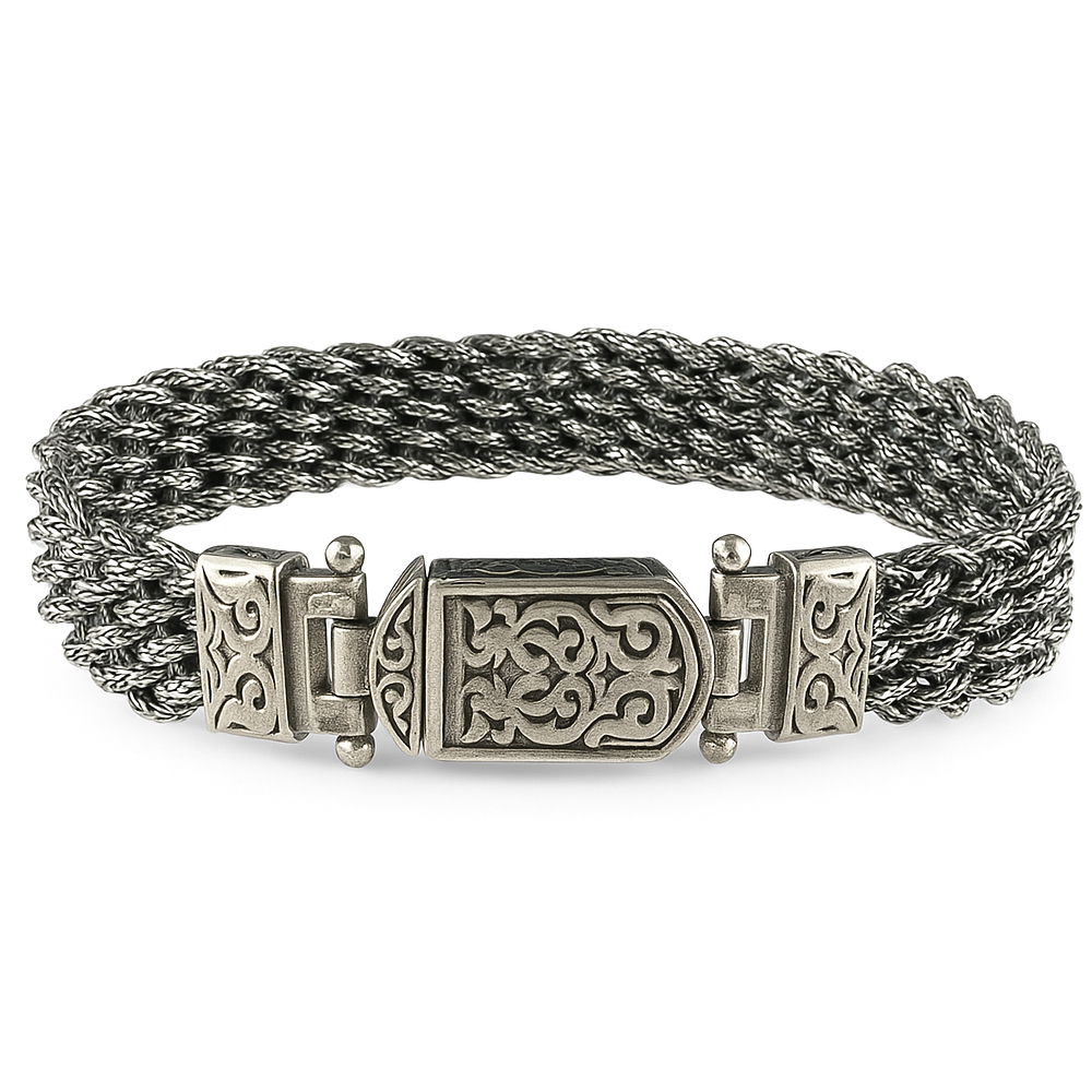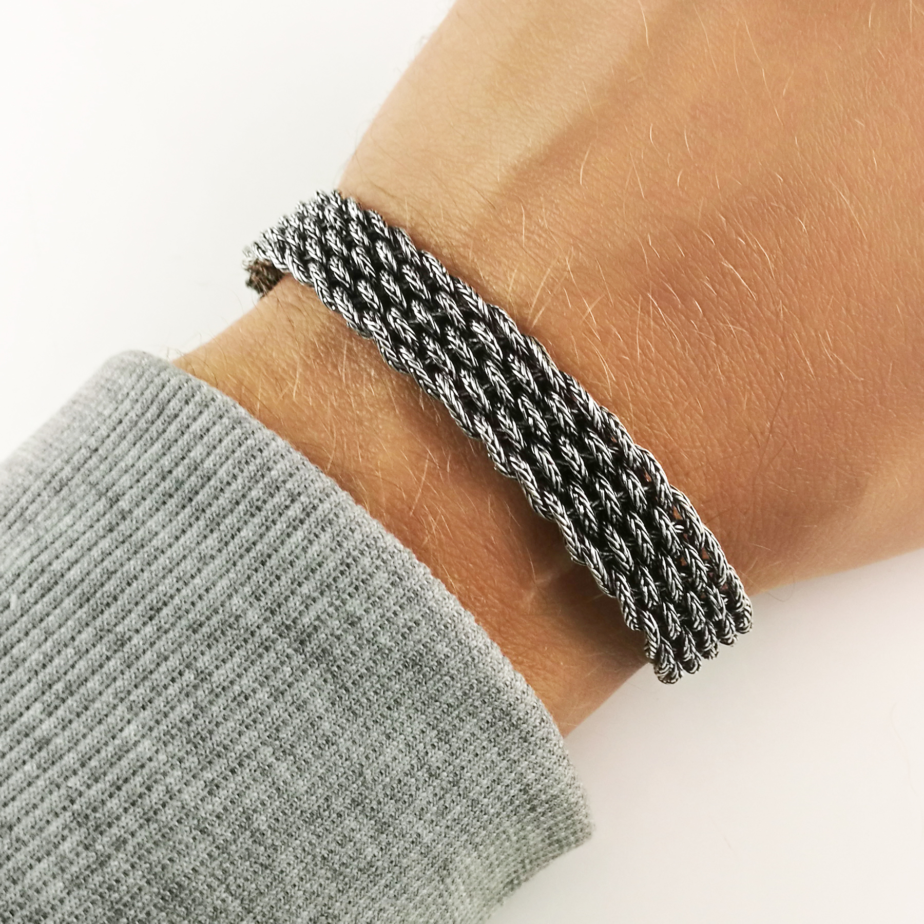 Ta elegancka i solidna bransoletka to idealny dodatek dla nowoczesnego mężczyzny. Wykonana ze srebra pr 875 wyróżnia się wytrzymałością oraz odpornością na uszkodzenia i zarysowania. Jej charakterystyczny, pleciony splot nadaje jej wyrazisty, męski styl, a masywne zapięcie zatrzaskowe gwarantuje wygodę i bezpieczeństwo noszenia.