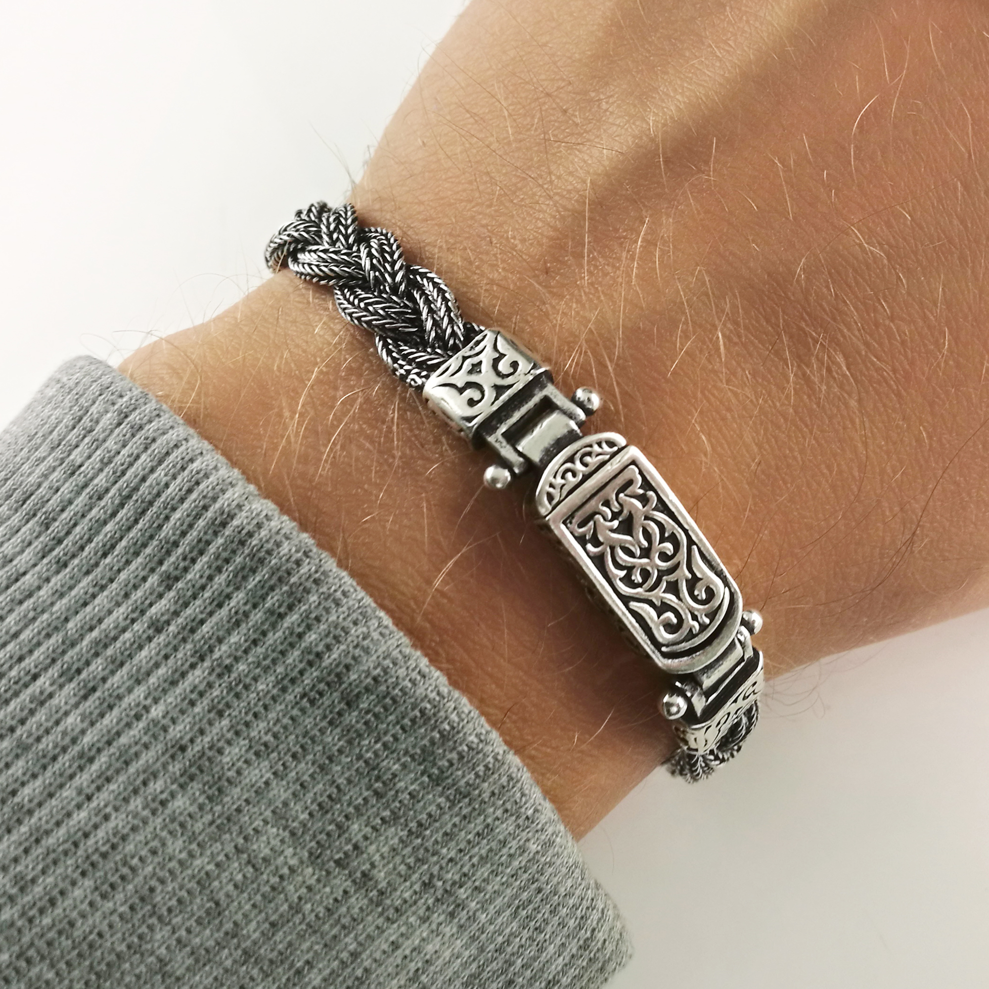 Ta elegancka i solidna bransoletka to idealny dodatek dla nowoczesnego mężczyzny. Wykonana ze srebra pr 875 wyróżnia się wytrzymałością oraz odpornością na uszkodzenia i zarysowania. Jej charakterystyczny, pleciony splot nadaje jej wyrazisty, męski styl, a masywne zapięcie zatrzaskowe gwarantuje wygodę i bezpieczeństwo noszenia.
