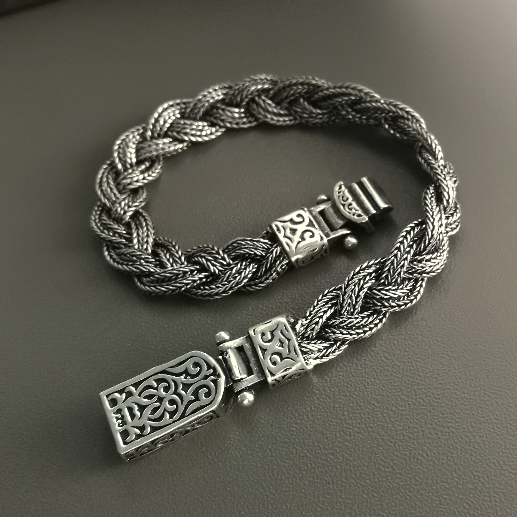 Gruba Unikatowa Bransoleta Srebrna Męska 7mm OKSYDOWANA Grawer GRATIS