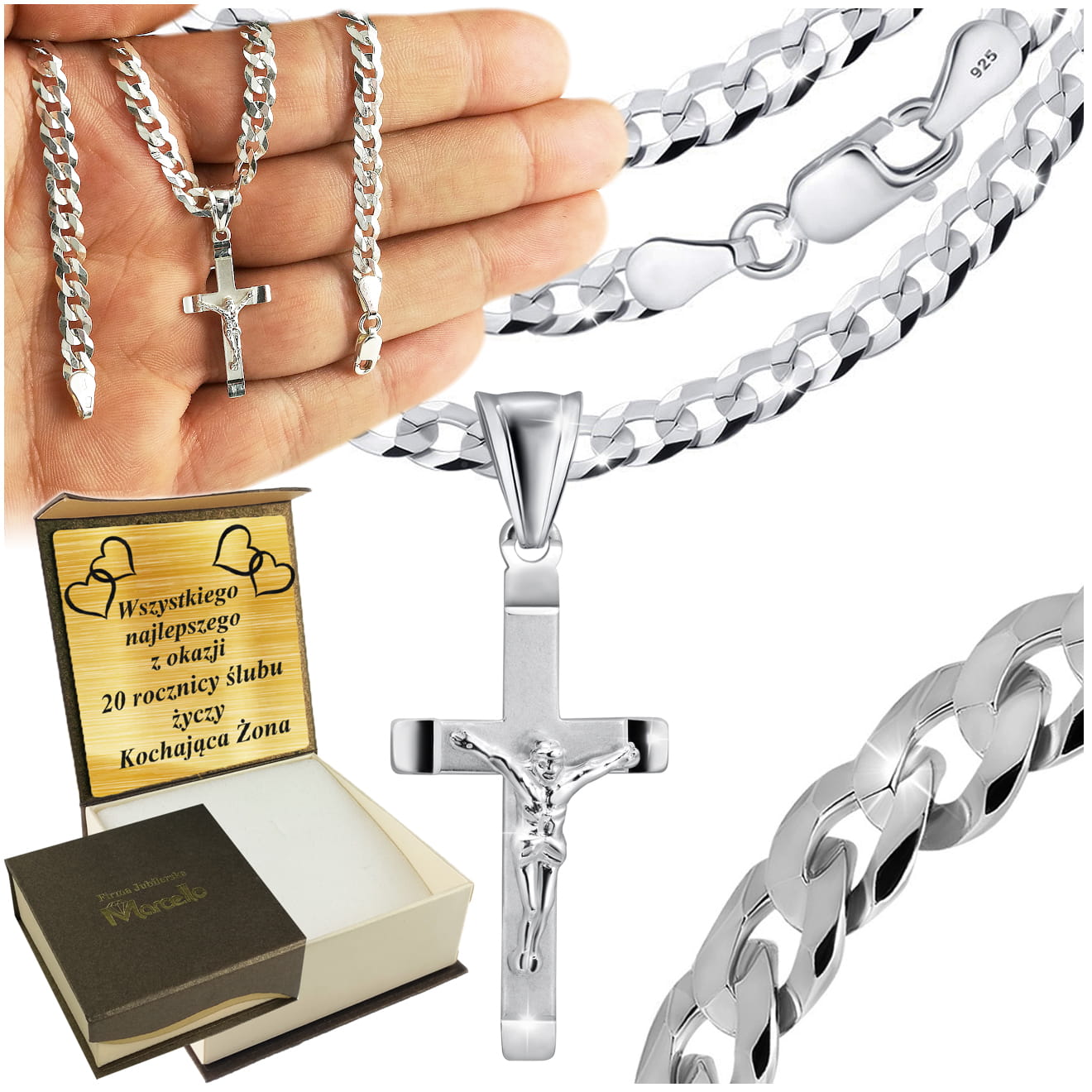 Łańcuszek Męski Srebrny 925 Pancerka 5mm z Krzyżykiem Dla Mężczyzny Grawer