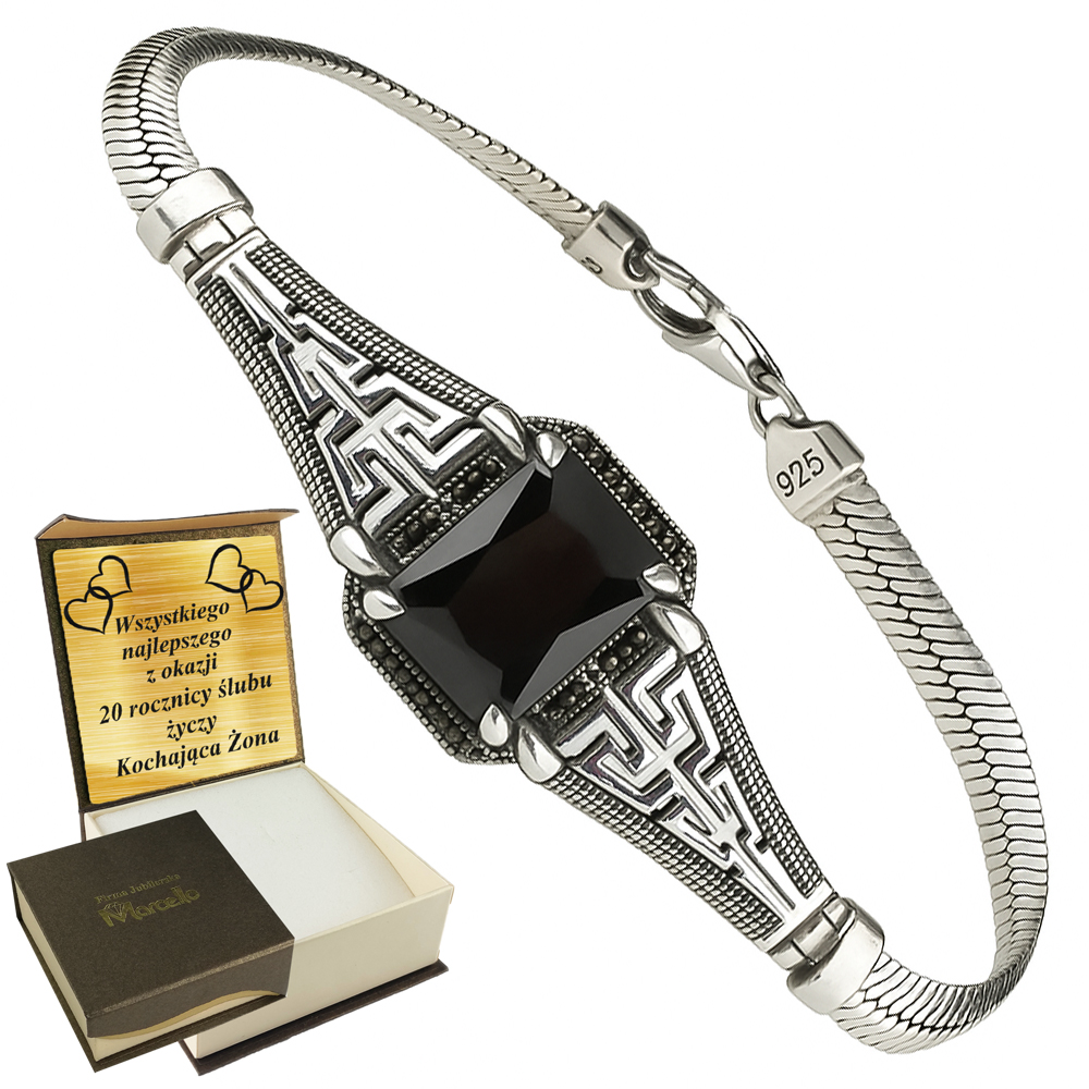 Męska Unikatowa Bransoleta Srebrna z Czarnym Kamieniem Grawer