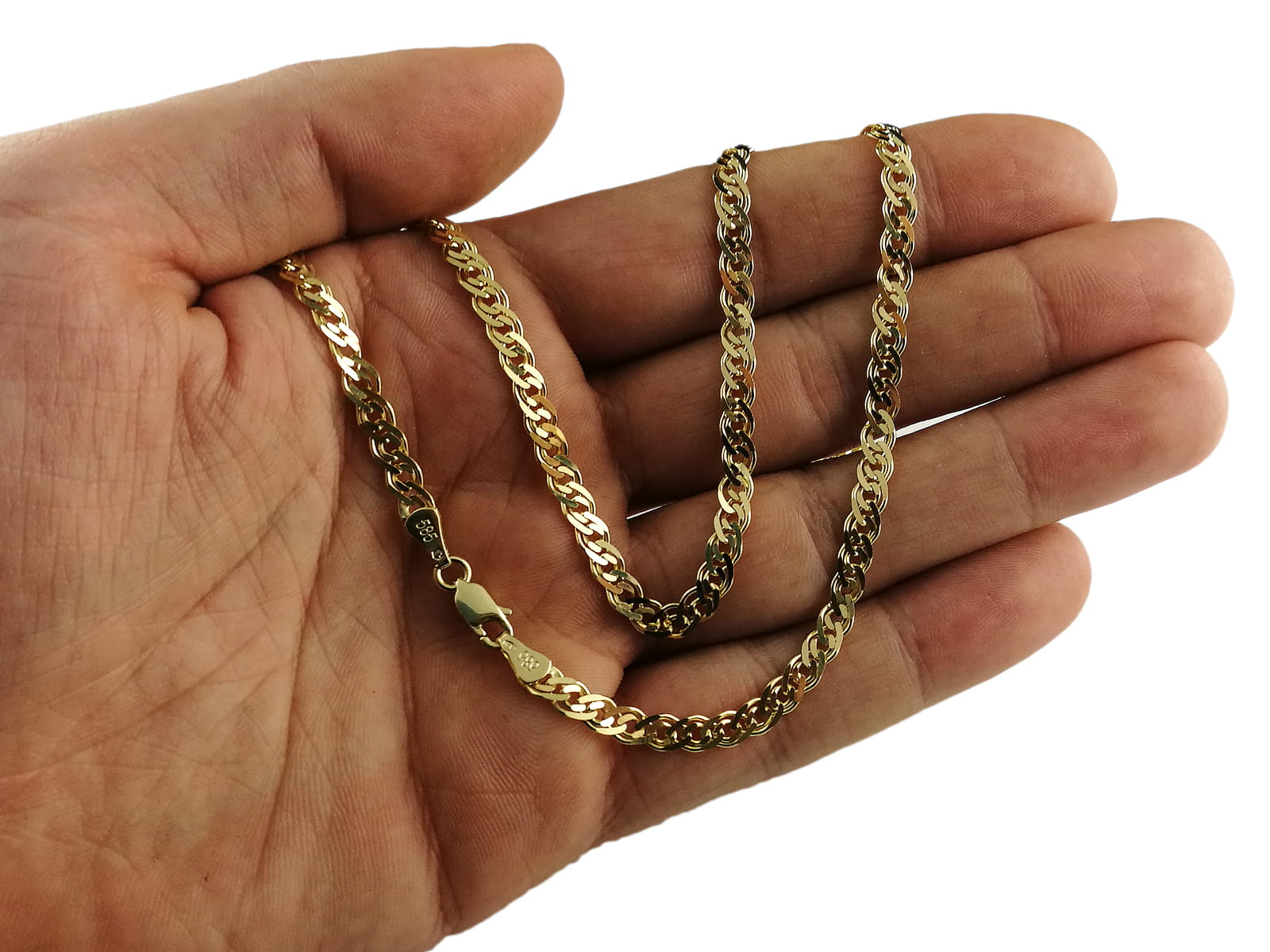 Przedmiotem sprzedaży jest Łańcuszek Złoty Wzór Nonna/Monaliza. Wyrób nowy, z metką, bezpośrednio od producenta. Precyzyjnie wykonany z bezpiecznym zapięciem. Dodatkowo łańcuszek jest diamentowany co nadaje mu idealny połysk. Wykonany w całości z wysokiej jakości złota próby 0,585 Nasz asortyment stanowią wyroby czołowych Włoskich producentów biżuterii. Wszystkie nasze wyroby są wykonane z czystego złota i mają wybitą próbę 0,585. Dodatkowo biżuteria powyżej 1 grama jest cechowana w Państwowym Urzędzie Probierczym , więc wybierając naszą ofertę masz 100% pewności że kupujesz wyrób oryginalny i faktycznie w całości wykonany ze złota.