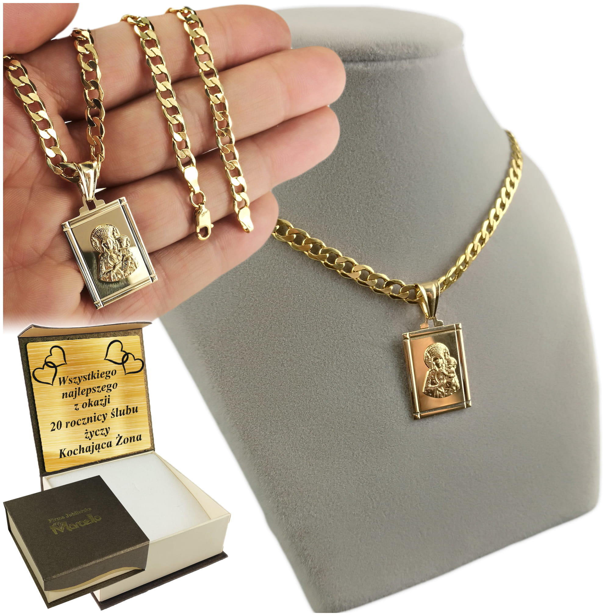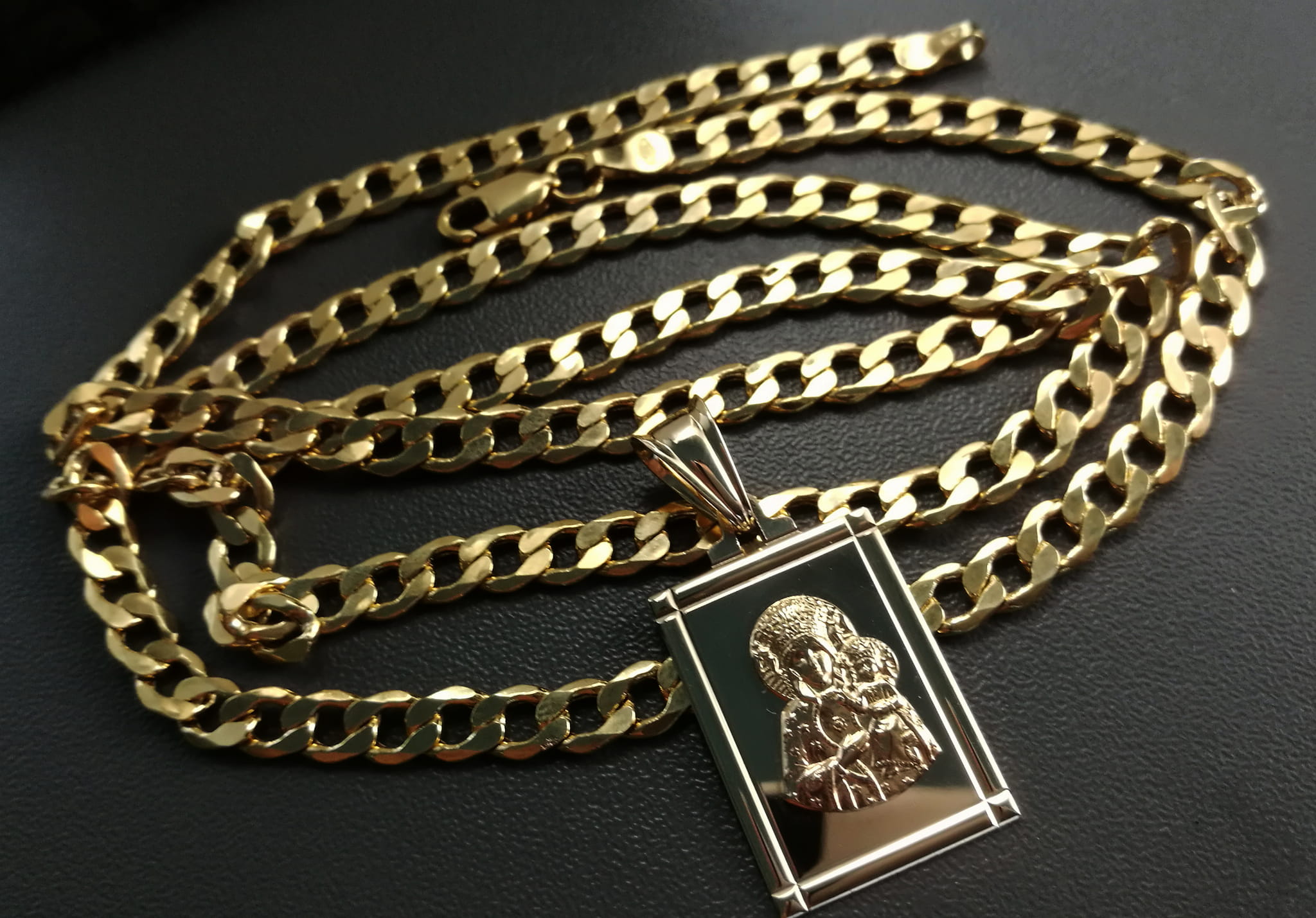 ZŁOTY MĘSKI ŁAŃCUSZEK PANCERKA 5mm Z MEDALIKIEM Złoto 585 GRAWER GRATIS