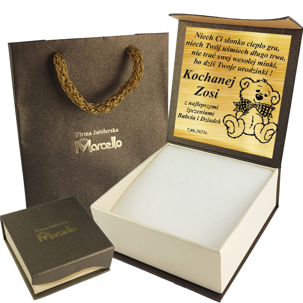 ➡️ W przypadku nie podania przez Ciebie informacji o grawerze nie dodajemy tabliczki w pudełeczku.