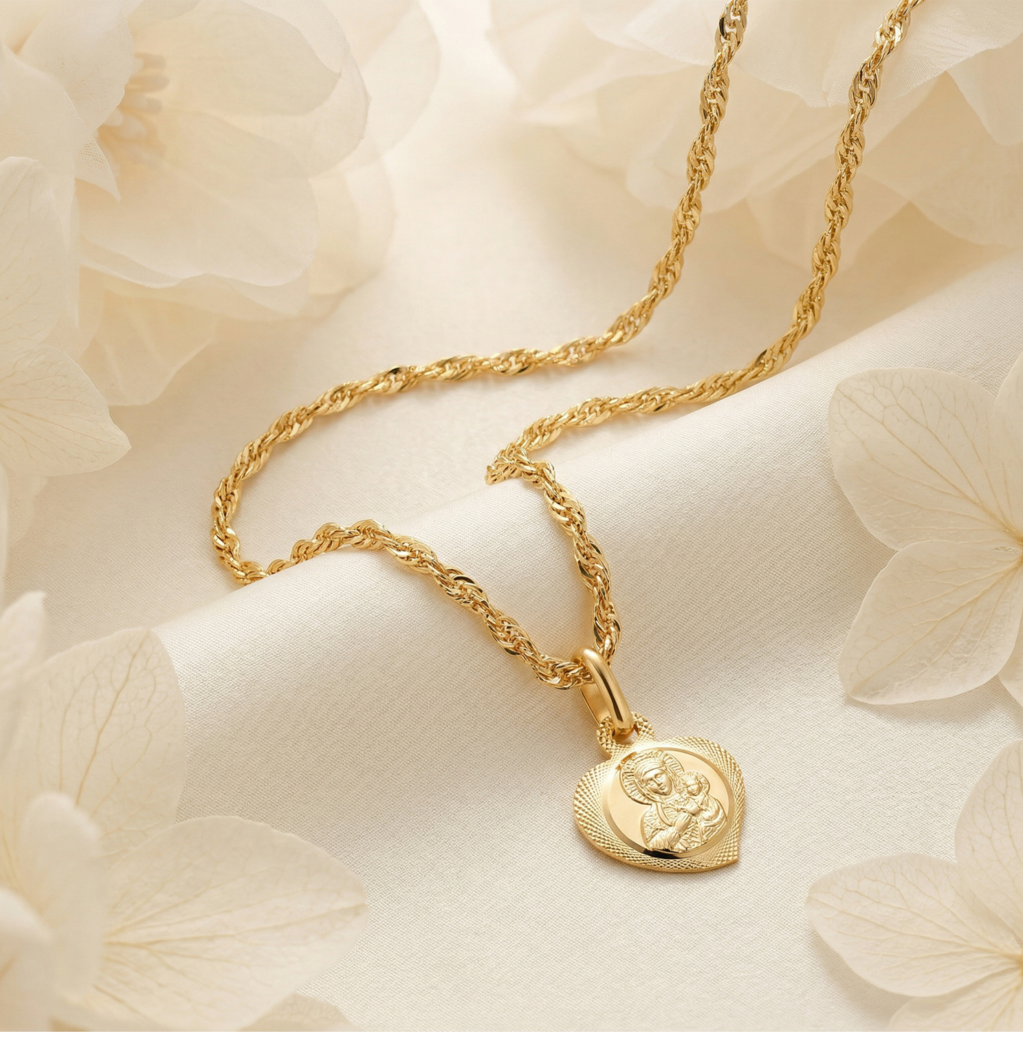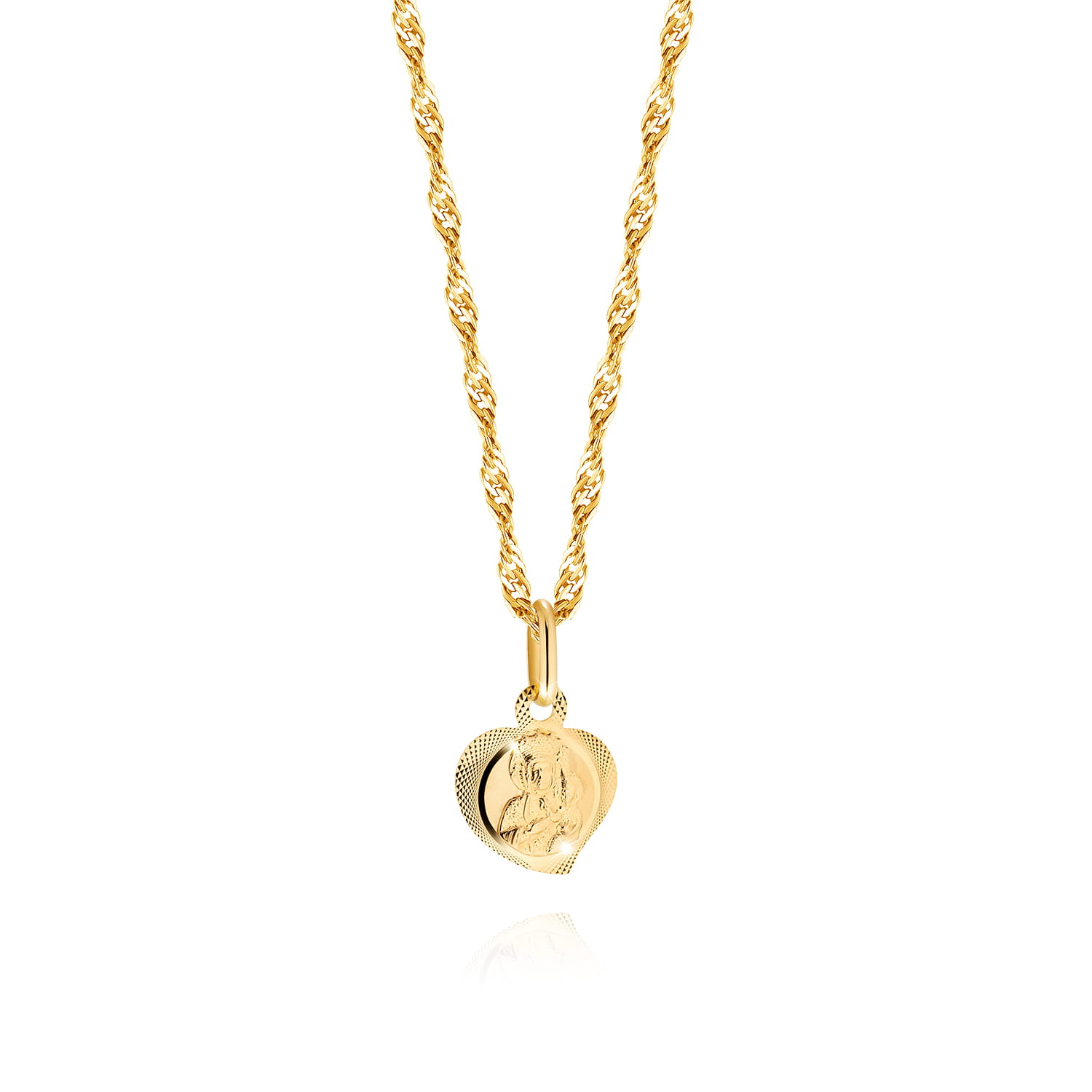 ZŁOTY ŁAŃCUSZEK Z MEDALIKIEM Z MATKĄ BOSKĄ SERDUSZKO