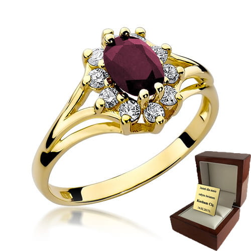 ZŁOTY PIERŚCIONEK ZARĘCZYNOWY Z BRYLANTEM + Rubin