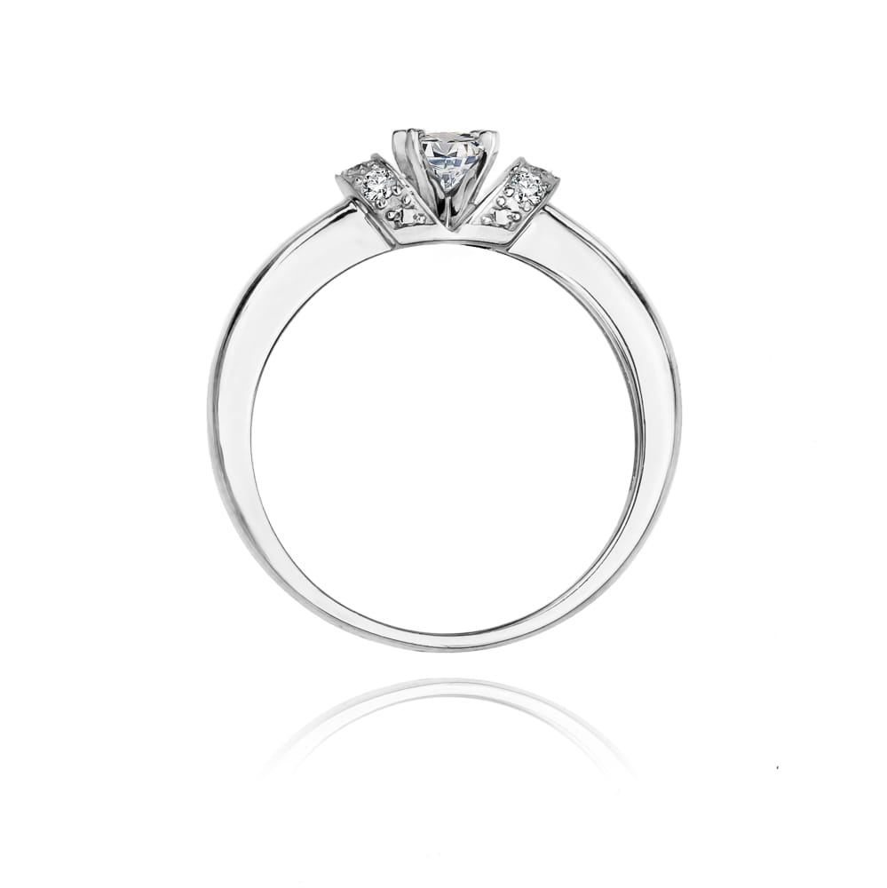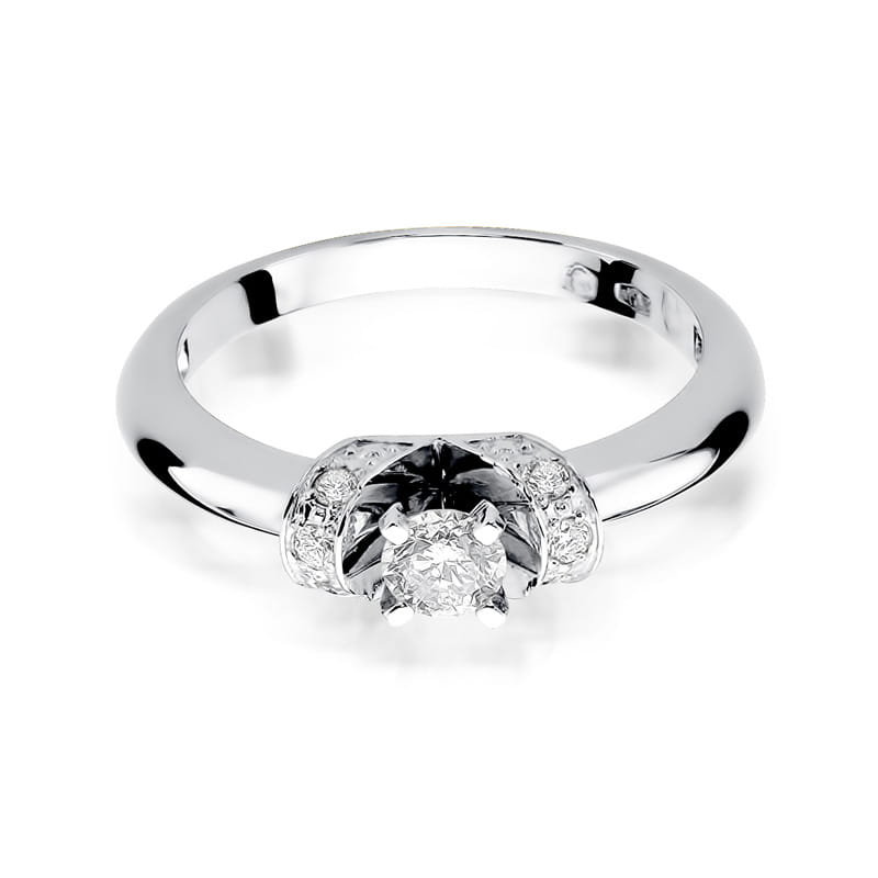 Pierścionek prezentuje się stylowo i efektownie a dzięki precyzyjnej jakości szlifu brylantów maksymalnie wydobyte zostały z nich walory optyczne dzięki czemu brylant wspaniale się mieni.