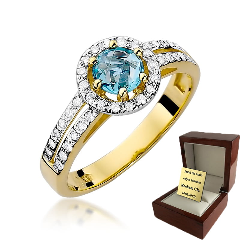 ZŁOTY PIERŚCIONEK ZARĘCZYNOWY Z TOPAZEM I BRYLANTAMI