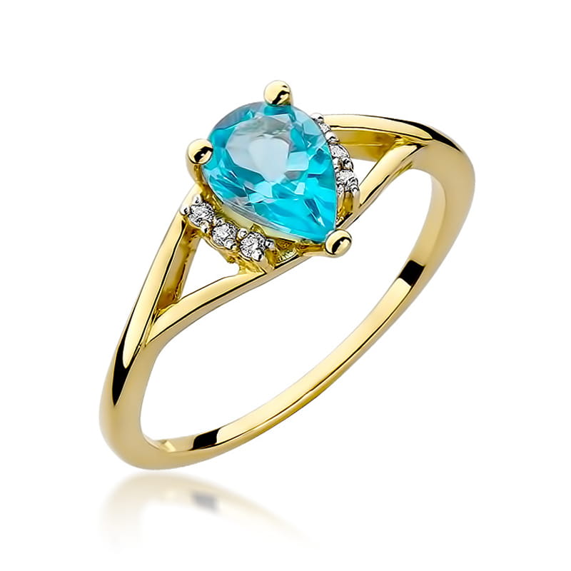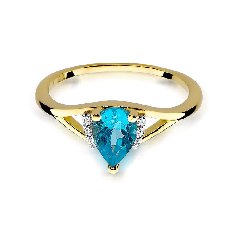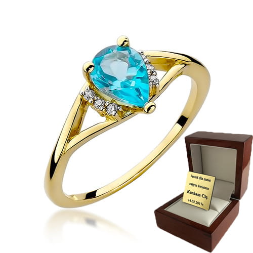 ZŁOTY PIERŚCIONEK ZARĘCZYNOWY Z TOPAZEM i BRYLANTAMI