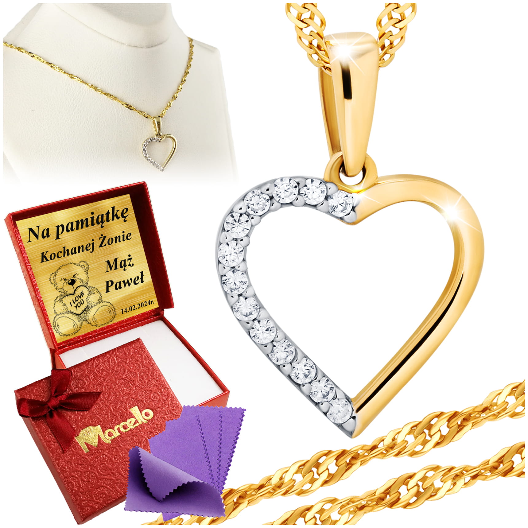 Złoty Łańcuszek 333 Naszyjnik Wisiorek Serce Grawer UPOMINEK GRATIS