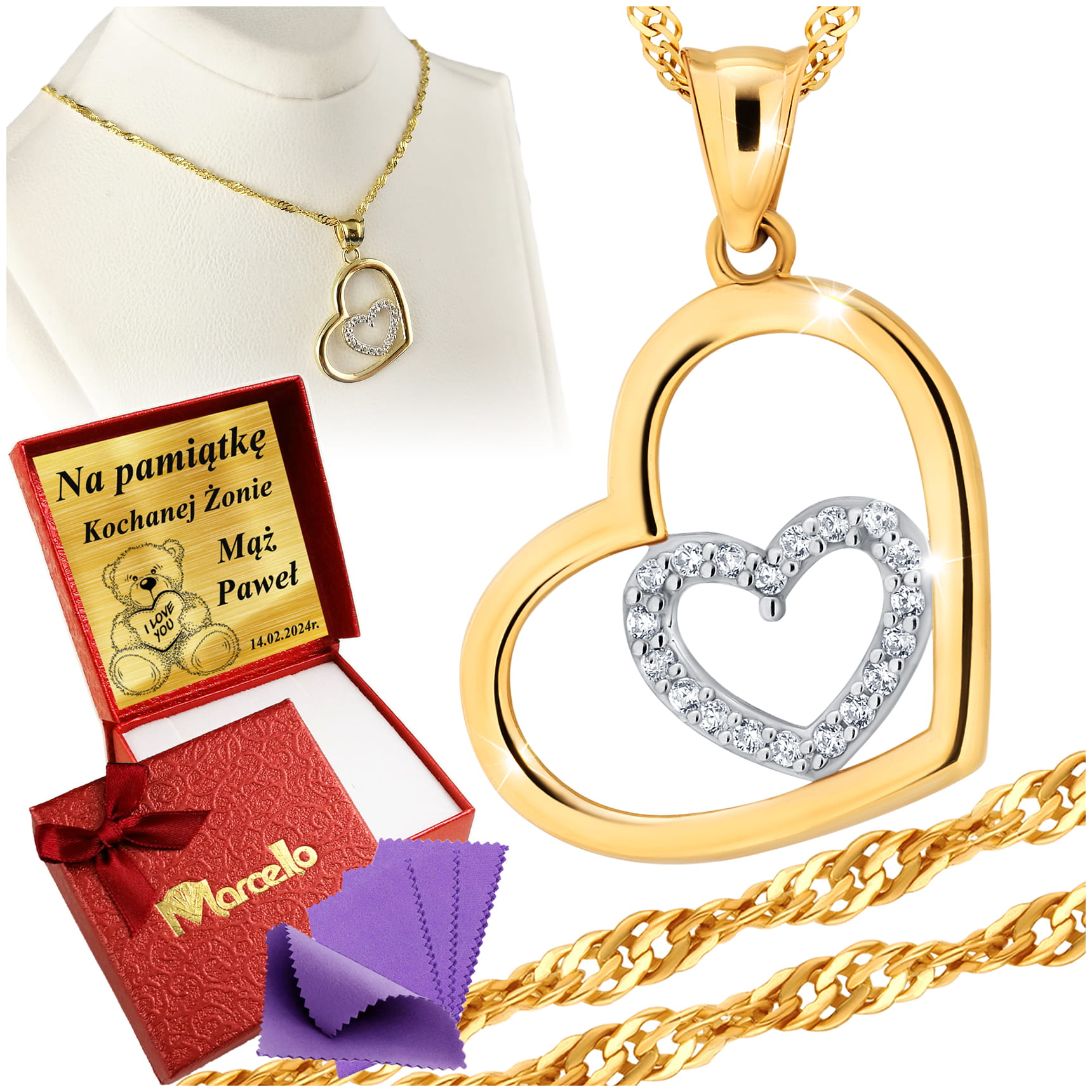 Złoty Łańcuszek 333 Naszyjnik Wisiorek Serce Grawer UPOMINEK GRATIS
