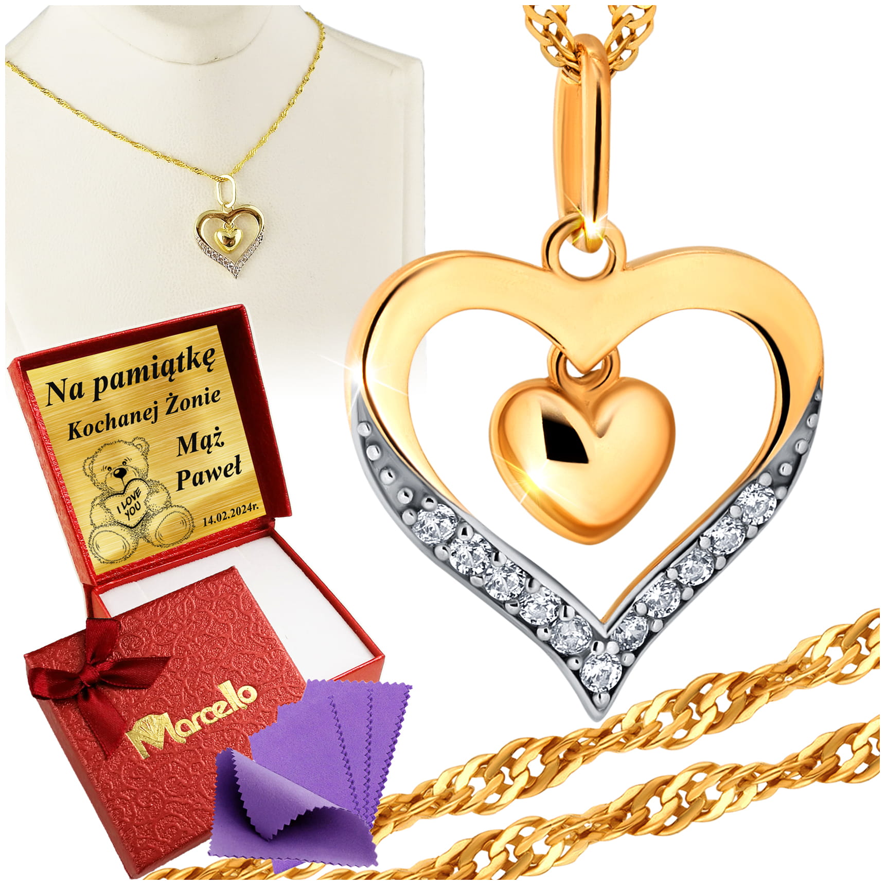 Złoty Łańcuszek 333 Naszyjnik Wisiorek Serce Grawer UPOMINEK GRATIS