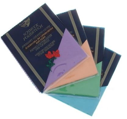 Profesjonalna ściereczka do czyszczenia biżuterii złotej oraz srebrnej renomowanej, niemieckiej marki Silbo. Ściereczka nasączona jest specjalistycznym impregnatem, który skutecznie czyści powierzchnię biżuterii złotej oraz srebrnej nadając jej połysk. Ściereczka jest drobno tkana oraz puszysta, dzięki czemu jest bardzo wydajna i skuteczna, a zarazem delikatna dla powierzchni biżuterii. Oprócz właściwości czyszczących specjalnie dobrana formuła impregnatu zabezpiecza biżuterię przed powstawaniem nalotu oraz czernienia.