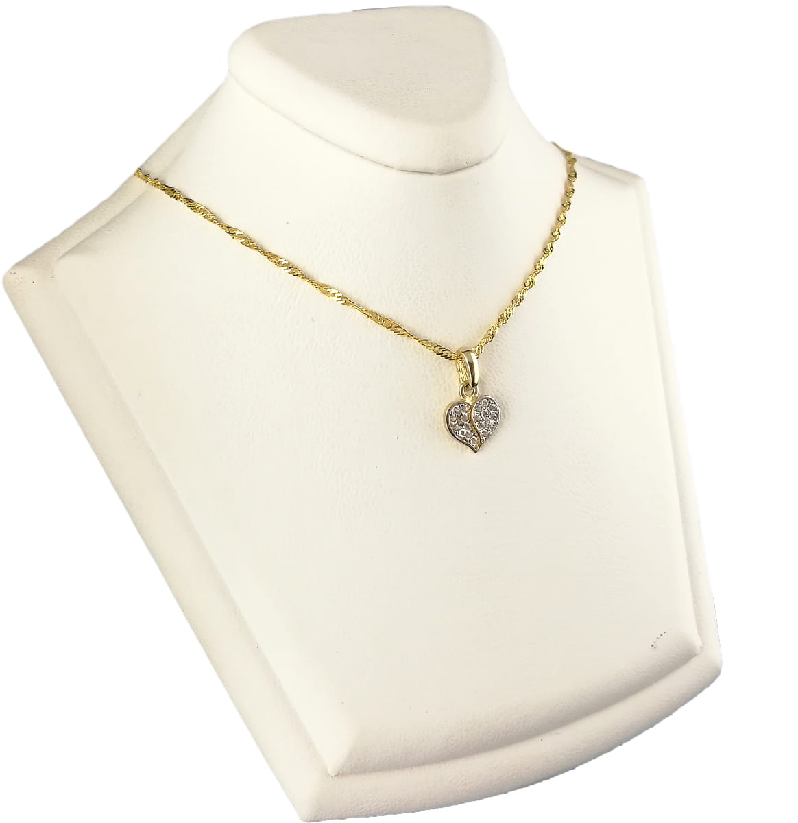 Przedmiotem sprzedaży jest złoty komplet ,łańcuszek wraz z wisiorkiem. Produkt jest nowy, zapakowany w eleganckie pudełeczko z dedykacją na życzenie klienta. Wyrób został precyzyjnie wykonany z należytą dbałością o detale.Całość została wykonana ze złota  próby 333 . Każdy złoty produkt o masie powyżej 1 gram jest przebadany w Państwowym Urzędzie Probierczym pod kątem jakości złota i ma wybitą próbę zgodnie z Polskim prawem probierczym więc wybierając naszą ofertę masz 100% pewności że kupujesz wyrób oryginalny i faktycznie w całości wykonany ze złota.