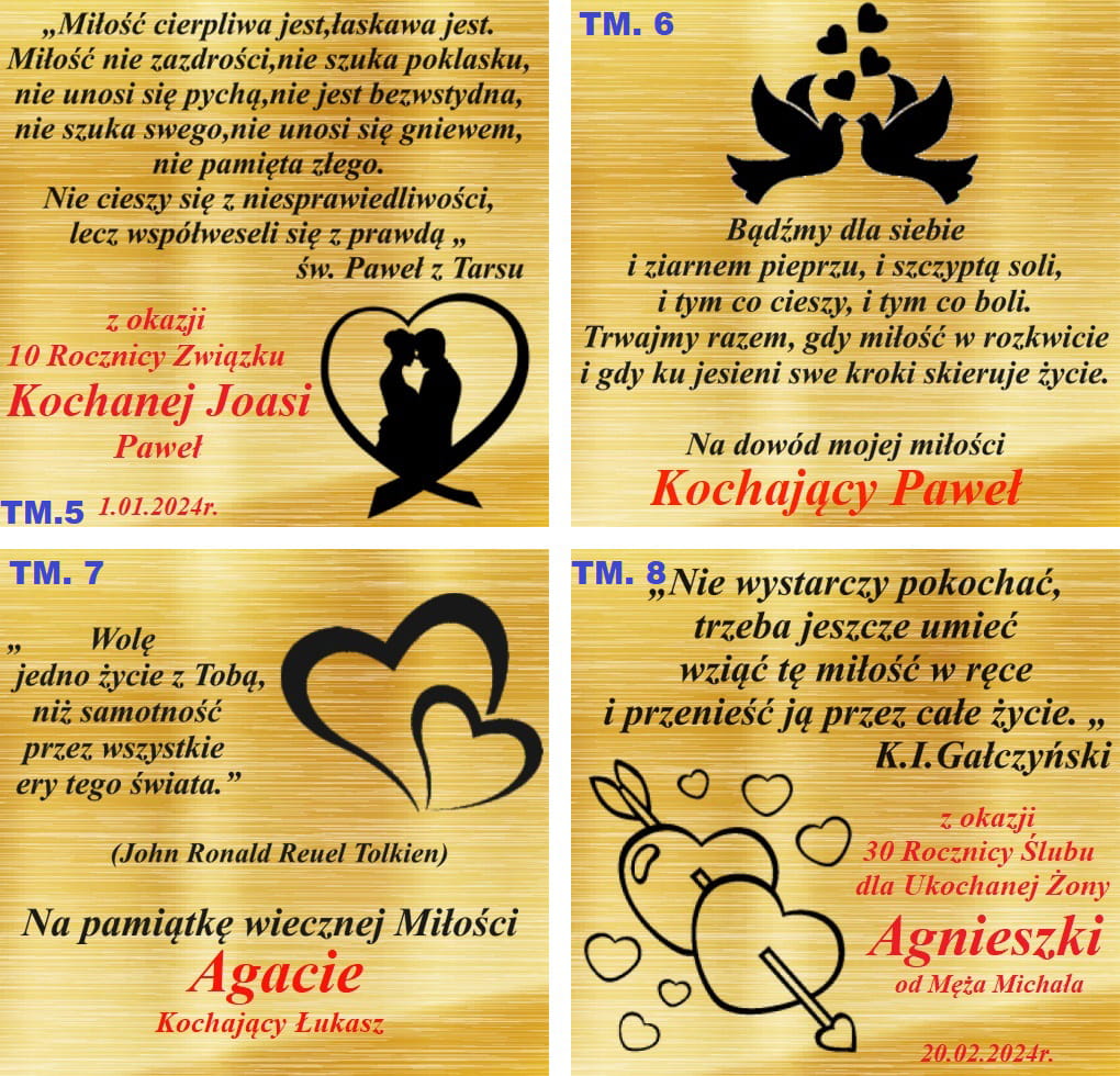 ➡️ Podaj, który numer projektu tabliczki wybierasz oraz dane do wpisania w miejsca oznaczone na czerwono.  Aby otrzymać tabliczkę prosimy o następującą wiadomość informacje np: