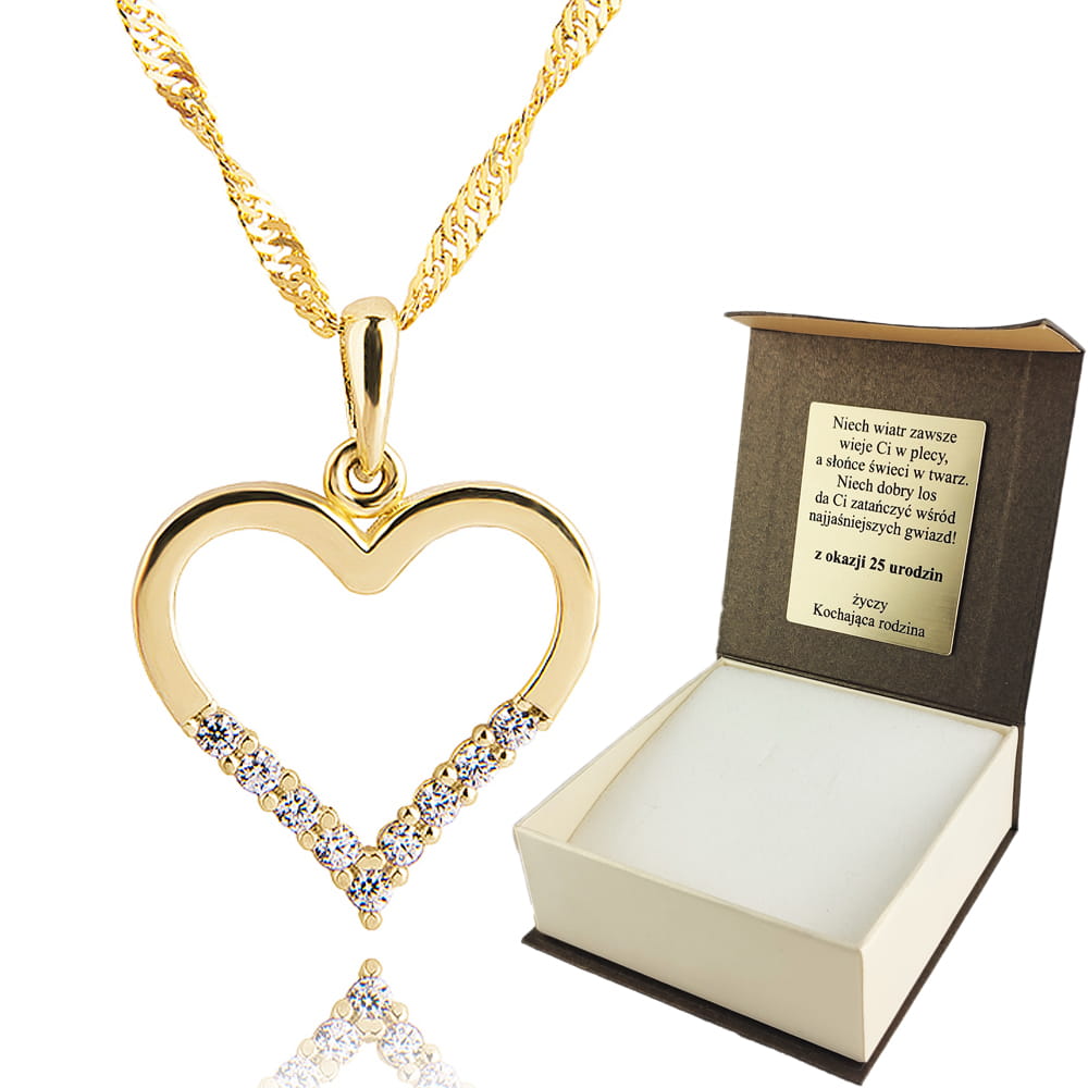 Złoty Łańcuszek z Wisiorkiem Serduszko 333 Grawer
