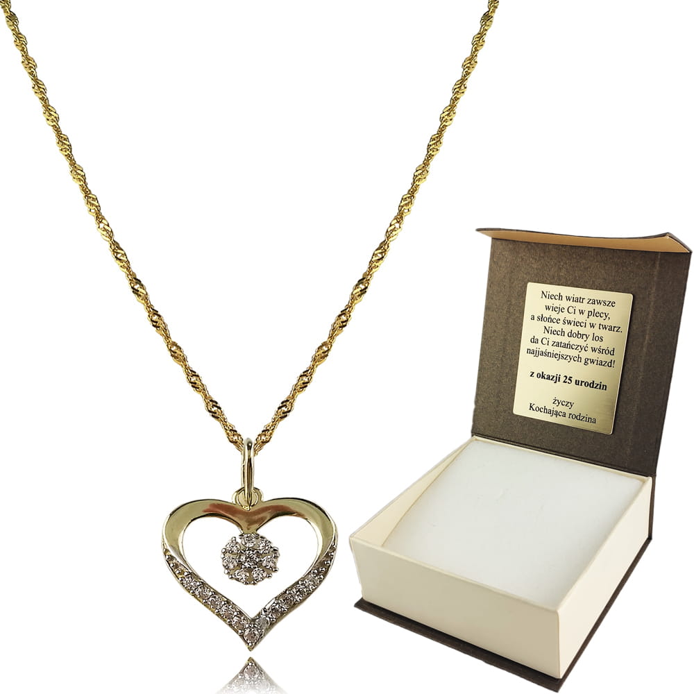 Złoty Łańcuszek z Wisiorkiem Serduszko 333 Grawer